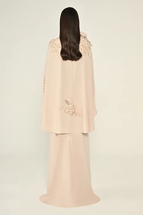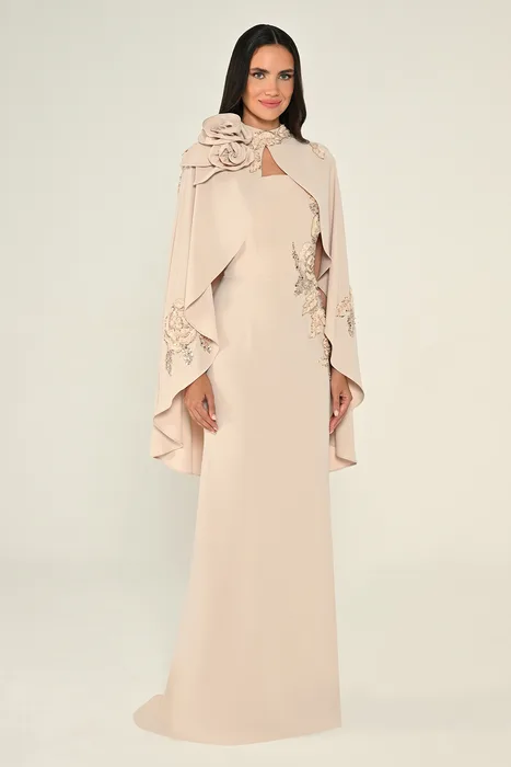 RA7168 - שמלת מקסי מבד קטיפה עם שרוולים ארוכים, גב תחרה ושסע