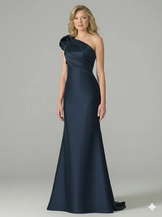 RAMV1358 - שמלת מיקדו גמישה, המאופיינת בעיצוב מפוסל של כתף אחת ובקווים נקיים
