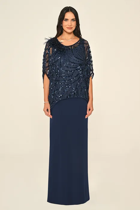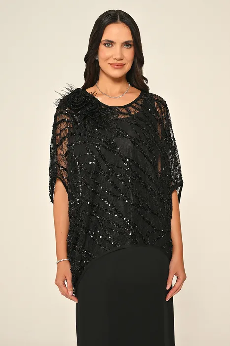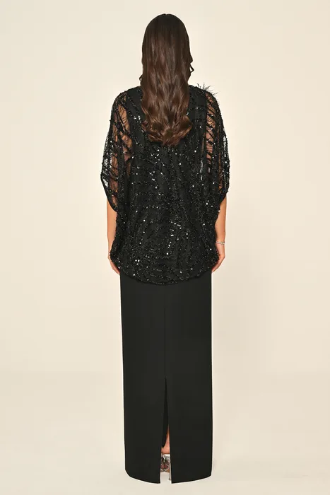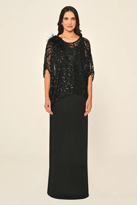 RA7315 - שמלת מקסי עם חלק עליון מפאייטים ועיטורי פרחים בכתפיים