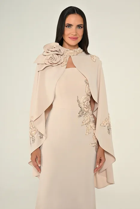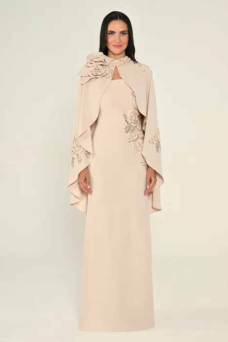 RA7168 - שמלת מקסי מבד קטיפה עם שרוולים ארוכים, גב תחרה ושסע
