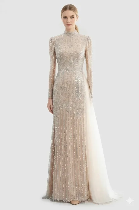 RA0001 - שמלת מקסי עם עיטורי אבנים