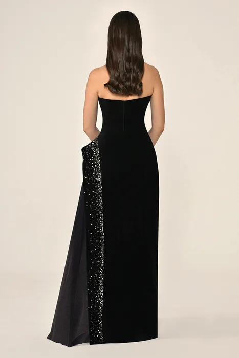 RA7235 - שמלת מקסי מבד קטיפה בגזרת סטרפלס עם חצאית טול מעוטרת אבנים