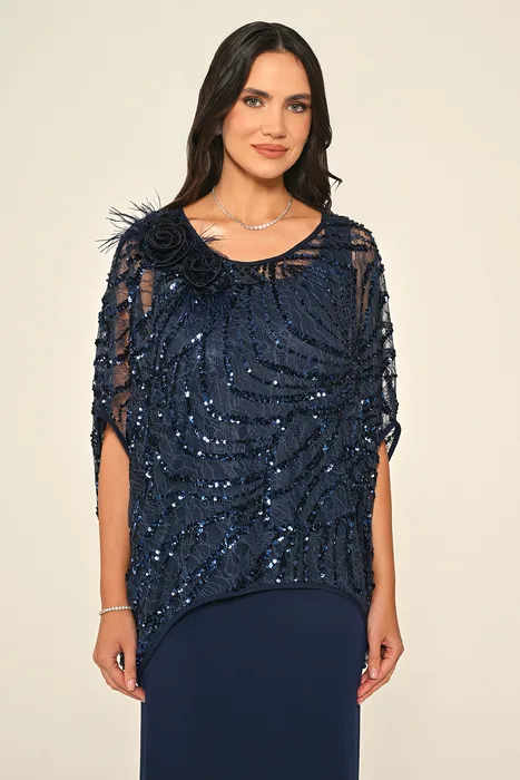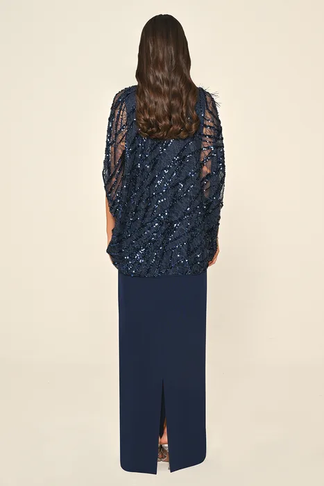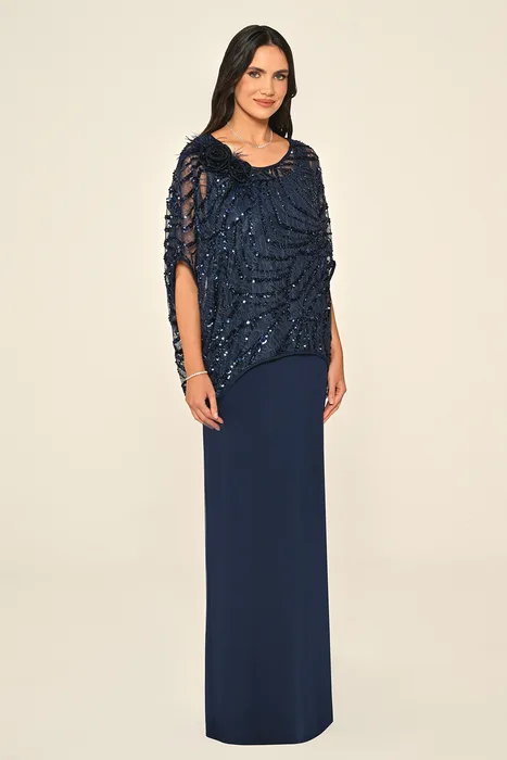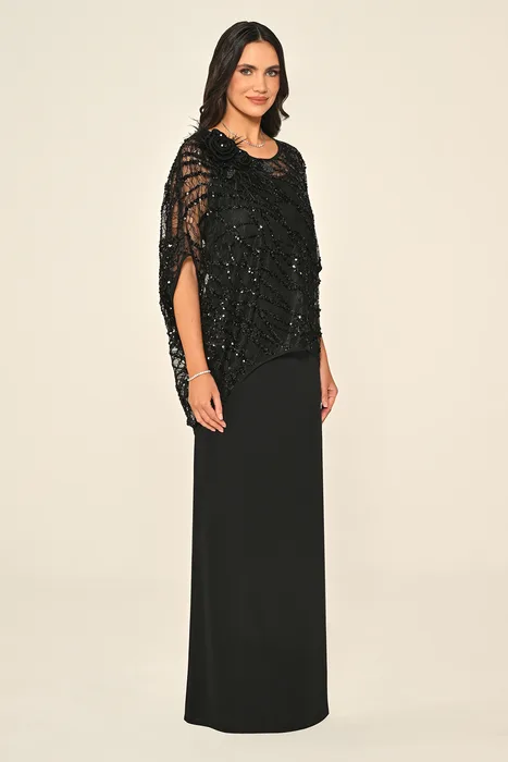 RA7315 - שמלת מקסי עם חלק עליון מפאייטים ועיטורי פרחים בכתפיים